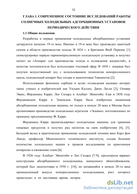 ГЛАВА 1. Современное состояние исследований работы солнечных холодильных адсорбционных установок периодического действия 12