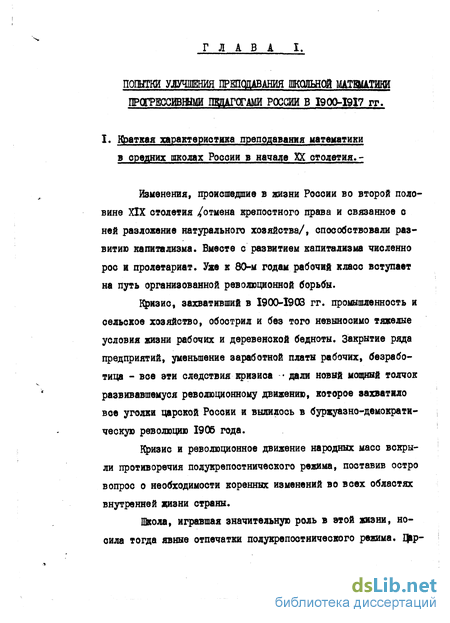 I/ школе". Это обстоятельство привело к изучению попыток улучшения преподавания математики в средних школах России начала №. столетия. Полученной от этого материал, на наш взгляд представляет известную ценность и внесен в диссертацию в первого раздела .Два остальные раздела советскому периоду.