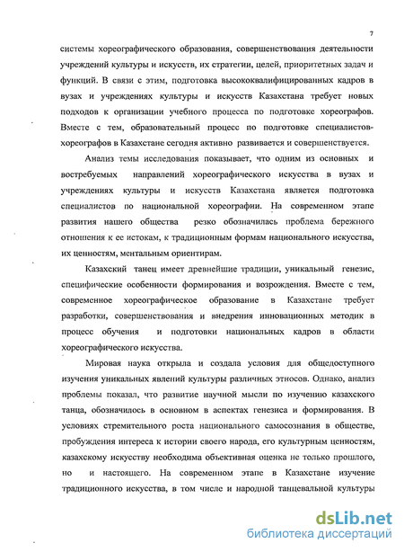 Анализ темы исследования показывает, что одним из основных и востребуемых направлений хореографического искусства в вузах и учреждениях культуры и искусств Казахстана является подготовка специалистов по национальной хореографии. На современном этапе развития нашего общества резко обозначилась проблема бережного отношения к ее истокам, к традиционным формам национального искусства, их ценностям, ментальным ориентирам.