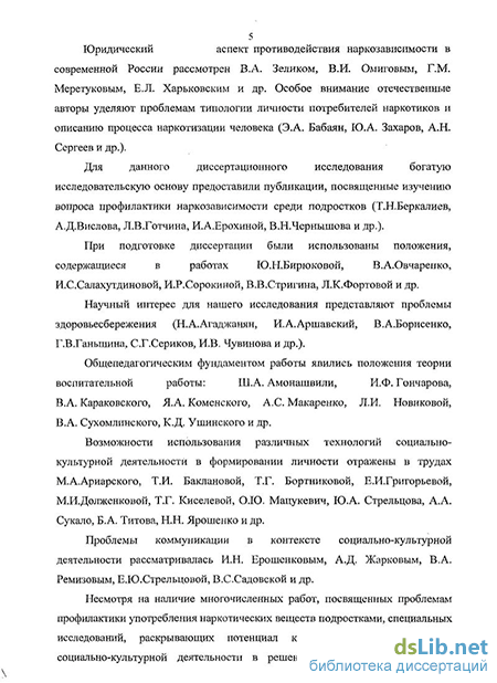 Для данного диссертационного исследования богатую исследовательскую основу предоставили публикации, посвященные изучению вопроса профилактики наркозависимости среди подростков (Т.Н.Беркалиев, А.Д.Вислова, Л.В.Готчина, И.А.Ерохиной, В.Н.Чернышова и др.).