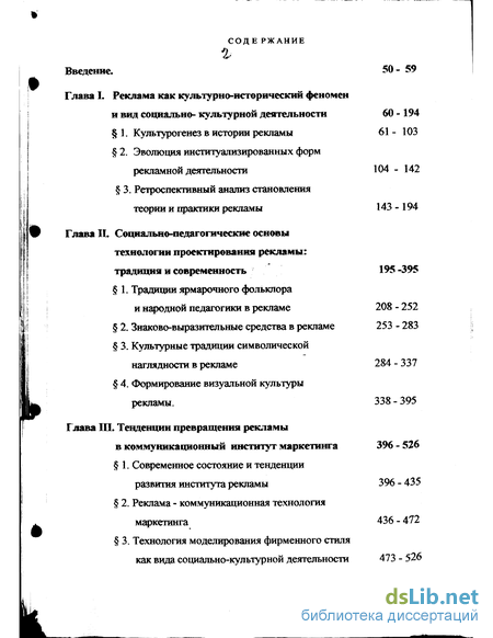 В главе 2 «Социально-педагогические основы технологии проектирования рекламы: традиция и современность» с точки зрения междисциплинарного характера исследования рассматривается целостная технологическая проблема проектирования рекламы, обосновывается принцип моделирования деятельности, выявляется «ресурсная база», обеспечивающая технологический процесс, определяется роль знаково выразительных средств, символической наглядности в рекламе, предлагаются технологические решения по формированию визуальной культуры рекламы, обосновывается роль профессиональной компетенции лиц, занимающихся этой сферой деятельности.