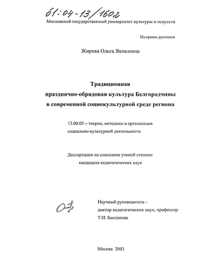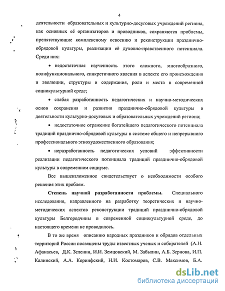 Степень научной разработанности проблемы. Специального исследования, направленного на разработку теоретических и научно-методических аспектов реконструкции традиций празднично-обрядовой культуры Белгородчины в современной социокультурной среде, до настоящего времени не проводилось.