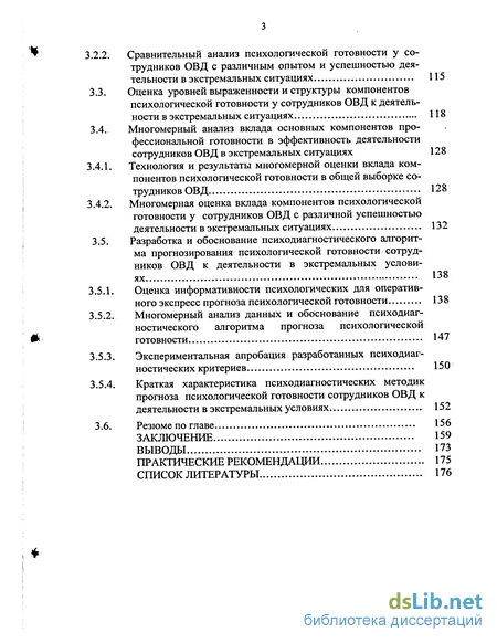 3.5.4. Краткая характеристика психодиагностических методик прогноза психологической готовности сотрудников ОВД к деятельности в экстремальных условиях. 152