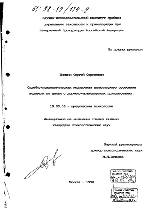 - Теоретические вопросы судебно-психологической экспертизы по фактам дорожно-транспортных происшествий