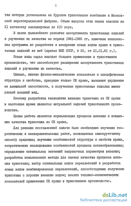 Целью работы является нормализация процесса вязания и повышение качества трикотажа из СК пряжи.