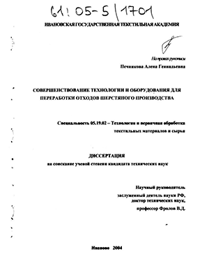 Цель диссертационной работы заключается в повышении эффективности технологического процесса переработки отходов шерсти на основе разработки устройств, реализующих регенерацию волокон для получения качественного вторичного сырья.