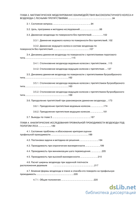 ГЛАВА 4. Аналитические исследования профильной проходимости вездехода под пологом леса .189