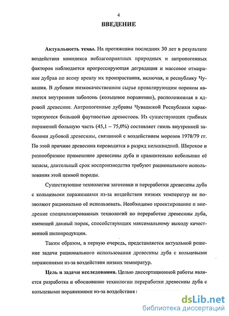 Цель и задачи исследования. Целью диссертационной работы является разработка и обоснование технологии переработки древесины дуба с кольцевыми поражениями из-за воздействия низких температур.