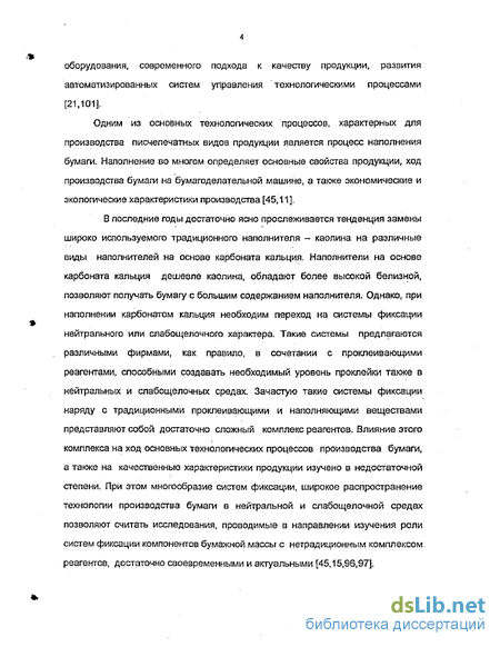 В последние годы достаточно ясно прослеживается тенденция замены широко используемого традиционного наполнителя - каолина на различные виды наполнителей на основе карбоната кальция. Наполнители на основе карбоната кальция дешевле каолина, обладают более высокой белизной, позволяют получать бумагу с большим содержанием наполнителя. Однако, при наполнении карбонатом кальция необходим переход на системы фиксации нейтрального или слабощелочного характера. Такие системы предлагаются различными фирмами, как правило, в сочетании с проклеивающими реагентами, способными создавать необходимый уровень проклейки также в нейтральных и слабощелочных средах. Зачастую такие системы фиксации наряду с традиционными проклеивающими и наполняющими веществами представляют собой достаточно сложный комплекс реагентов. Влияние этого комплекса на ход основных технологических процессов производства бумаги, а также на качественные характеристики продукции изучено в недостаточной степени. При этом многообразие систем фиксации, широкое распространение технологии производства бумаги в нейтральной и слабощелочной средах позволяют считать исследования, проводимые в направлении изучения роли систем фиксации компонентов бумажной массы с нетрадиционным комплексом реагентов, достаточно своевременными и актуальными [45,15,96,97].