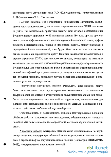 щиеся как агрономического, так и почвозащитного влияния ПЗЛН основаны на учёте, так называемой, проектной высоты, при которой лесонасаждения функционируют примерно 40-45 процентов жизни. Во всех других временных отрезках эффективность их является функцией времени. Отсюда, эффективность лесонасаждений, исходя из проектной высоты, может оказаться в определённой мере завышенной, и не будет объективно отражать возможности их влияния на окружающую среду. Новизна исследований заключается в оценке структуры ПЗЛН, как единого комплекса, состоящего из взаимно-увязанных составляющих компонентов с различными морфометрическими и функциональными особенностями, разной динамикой их формирования, различной спецификой пространственного размещения в зависимости от густоты (площади питания), породного состава и возраста лесонасаждений в различных условиях произрастания.