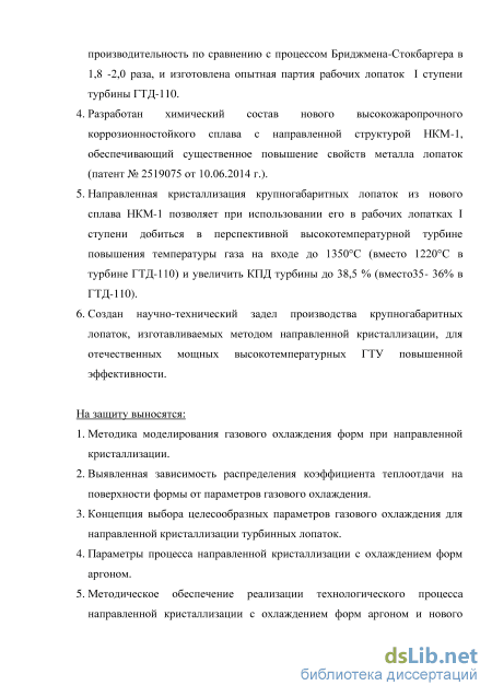аэродинамических и материаловедческих зависимостей и на основании этого разработка процесса направленной кристаллизации с охлаждением форм аргоном и нового сплава для литья крупногабаритных лопаток газовых турбин.