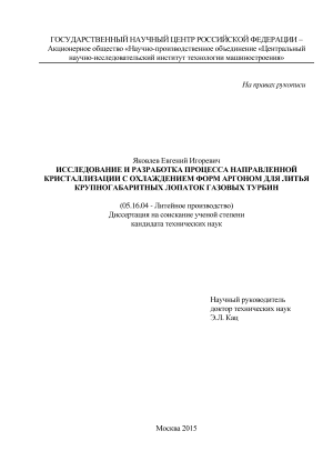 Таким образом, в данной работе необходимо разработать технологический направленной кристаллизации и коррозионностойкий жаропрочный сплав для литья крупногабаритных лопаток газовых турбин.