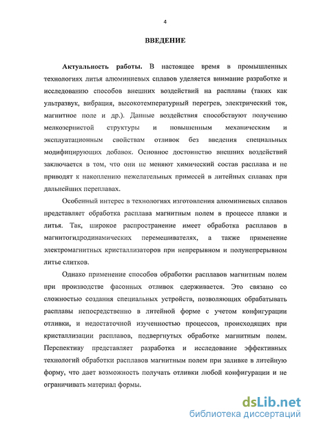 Однако применение способов обработки расплавов магнитным полем при производстве фасонных отливок сдерживается. Это связано со сложностью создания специальных устройств, позволяющих обрабатывать расплавы непосредственно в литейной форме с учетом конфигурации отливки, и недостаточной изученностью процессов, происходящих при кристаллизации расплавов, подвергнутых обработке магнитным полем. Перспективу представляет разработка и исследование эффективных технологий обработки расплавов магнитным полем при заливке в литейную форму, что дает возможность получать отливки любой конфигурации и не ограничивать материал формы.