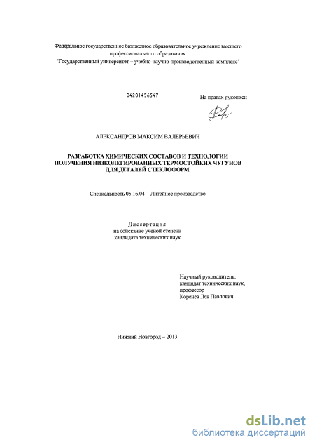 Решением этой проблемы занимались такие ученые, как Дэвис ДжР., Гладштейн И.Е., Кушнир М.А., Биргер И.А., Сильвестрович СИ., Аверченко П.А., Храмченков А.И. и др. Эти авторы предлагают использовать в качестве материала для деталей стеклоформ чугун ввиду его высокой циклической вязкости и прочности чугунов высоких марок, хорошей обрабатываемости, высокой теплопроводности. Ими отмечается повышение трещиностойкости стеклоформ при легировании чугуна различными элементами (хромом, никелем, медью, алюминием и др.). Однако не рассматривается влияние металлической основы, углеродного эквивалента, теплопроводности и ряда других факторов на эксплуатационную стойкость деталей стеклоформ. Технологические процессы, включающие режимы выплавки, рафинирования и модифицирования чугунов, также не рассматриваются ими.