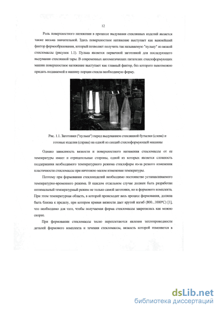 Одним из важнейших технологических свойств, отличающих стекло от других материалов, является способность поддаваться самым разнообразным способам формования без нарушения целостности изготавливаемого изделия. При этом самым распространенным способом изготовления полых стеклянных изделий, за счет своей производительности и широкого спектра возможных вариантов изделий, является выдувание. Этот способ формования является специфичным для стекла, так как его применение возможно благодаря определешюлгу сочетанию вязкости и поверхностного натяжения расплавленного стекла. Выдуванием изготавливают практически все полые стеклянные изделия, составляющие около одной трети всей вырабатываемой стеклянной продукции [2]. При этом наиболее распространенным способом получения узкогорлой стеклянной тары является прессовыдувной процесс (Narrow Neck Press & Blow) [3].