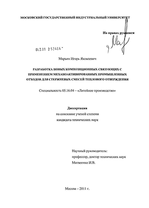 Проведение систематических исследований физико-химических свойств промышленных отходов и связующих композиций для создания на их основе стержневых смесей; разработка составов ПСС с пониженным содержанием СК.