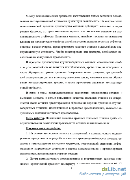 В связи с этим, совершенствование технологии производства отливок и выплавки металла с целью повышения качества стальных отливок из углеродистой стали, а также предотвращение образования горячих трещин на крупногабаритных отливках, образующихся в процессе кристаллизации, являются актуальными задачами литейного производства.