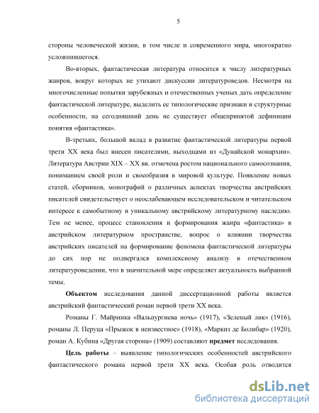 Объектом исследования данной диссертационной работы является австрийский фантастический роман первой трети XX века.