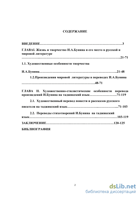 ГЛАВА II. Художественно-стилистические особенности перевода произведений И.Бунина на таджикский язык .71-119