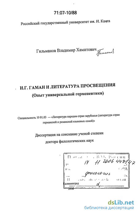 1. Эта работа представляет собой первое в истории российской науки комплексное, систематизированное историко-филологическое исследование творчества И.Г.Гамана, «авторство» которого - это достаточно уникальная, выполненная на широчайшем горизонте филологической образованности по-