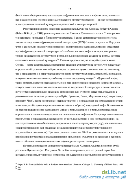11 В целом перспектива взгляда европейских ученых (В.Соллорс, К.Бигсби, Х.Икштадт) представляется более свободной от идеологического пресса; вместе с тем, серьезные европейские американисты в 1980-начале 2000-х гораздо реже американских обращаются к афроамериканскому материалу.
