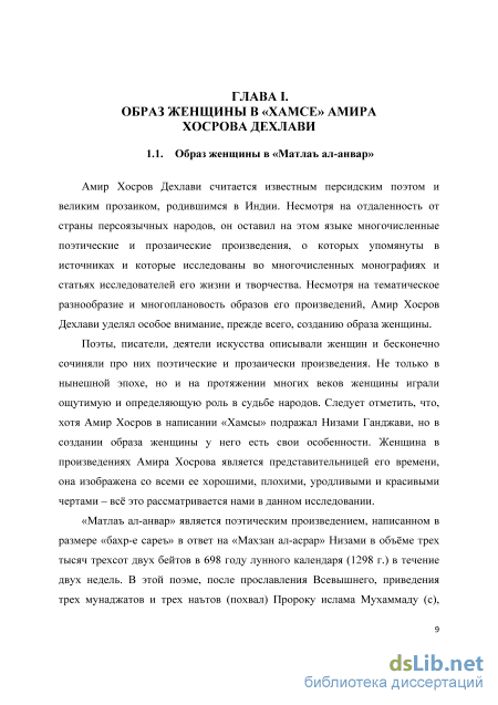 Глава 3. Поэтическое мастерство Амира Хосрова в создании женских