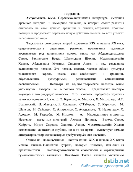 Обзор существующей научной литературы свидетельствует о том что несмотря, на существование определенного количества таджикских исследователей жизнь и творчество Накибхона Туграла до сих пор не стало объектом специального монографического исследования, а вопросы использования рифмы, редифы, метра, поэтического детства Туграла почти не затронуты в современным таджикском литературоведении этими положениями объясняется выбор настоящей диссертационной темы.