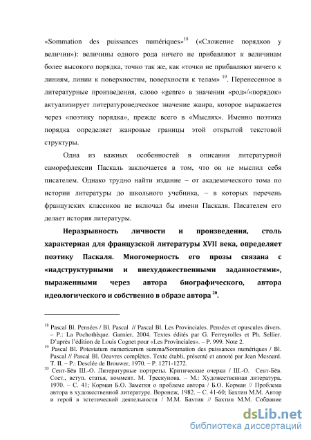 Коцюбинский С.Д. Литературное наследие Паскаля / С.Д. Коцюбинский // Ученые записки ЛГУ. Серия филологических наук. - Ленинград: Издание ЛГУ, 1941. - С. 30 70. Меднис Н.Е. "Именные", или "Персональные" тексты. Пушкинский текст русской литературы / Н.Е. Меднис // Меднис Н.Е. Сверхтексты в русской литературе. понимание произведений Паскаля как «единого текста» открывает перспективу взгляда на поэтику в становлении, основанного на соположении части и целого, единичного и общего.