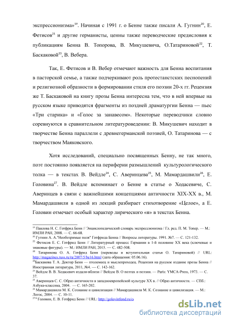 9 Фетисов Е.С. Готфрид Бенн // Литературный процесс Германии в 1-й половине ХХ века. М.: ИМЛИ РАН,