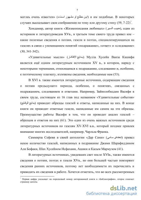Степень изученности темы. Надо отметить, что в источниках, начиная со времен правления династии тимуридов, мы находим материалы, достойные внимания, о характере поэзии, состоянии литературы той эпохи. Так, в «Антологии поэтов» ( pIj*^I ц*) Давлатшаха Самарканди, рассуждения и размышления Мавлана Абдуррахмана Джами о поэтах и поэзии в седьмой главе его прозаического произведения «Весенний сад» (u^j^) и в его «Диване стихов» (jbuSI и^), в «Даре любимым» (mw^I ***) Фахри Хирави, в антологии «Собрание изящных» (ц^ШИ и*11~) Эмира Алишера Наваи, в «Жизнеописания любимых» (j^l 4^) Хондамира, «Удивительных мыслях» (J*iVI &\±) Мулла Хусайн Ваиза Кашифи и других памятниках приведены различного рода размышления.
