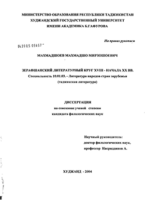 Махмадшоев Махмадшо Мирзошоевич. Зерафшанский литературный круг XVIII - начала XX в. : диссертация ... кандидата филологических наук : 10.01.03 / Махмадшоев Махмадшо Мирзошоевич; [Место защиты: Худжандский государственный университет].- Ходжент, 2004.- 217 с.: ил.