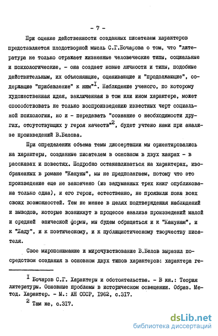 Обращение в данной диссертации к проблеме характера в прозе В.Белова обусловлено как эстетическими, изначально существующими, особенностями художественного творчества, так и требованиями сегодняшнего дня, предъявляемыми обществом литературе и науке о ней.