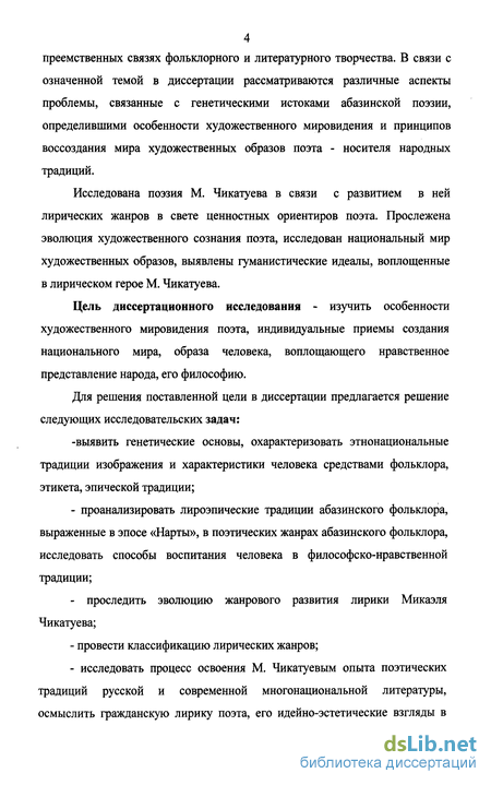 Концепция диссертационного труда базируется на аналитическом исследовании актуальных проблем, связанных со стилем, поэтикой, художественными образами поэзии М. Чикатуева, в которых выражается мировидение поэта, его миропонимание.
