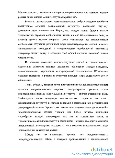 Актуальность исследования. Компаративистика (от лат.comparativus – сравнительный) – одно из ведущих направлений современной науки, отвечающее духу интеграционных процессов. Сравнительное литературоведение, сформировавшееся еще в XIX в., неуклонно развивается в отечественной науке. Объясняется это требованием времени, направленностью мирового литературного процесса, когда взаимодействие разных национальных культур – вполне очевидный факт. Наблюдается тенденция типологического единства нескольких национальных литератур в составе какой-либо зональной или региональной литературной системы. Кроме того, соотнесение национальных достижений с инонациональными создает условия для более четкого выявления национального своеобразия каждой литературы.