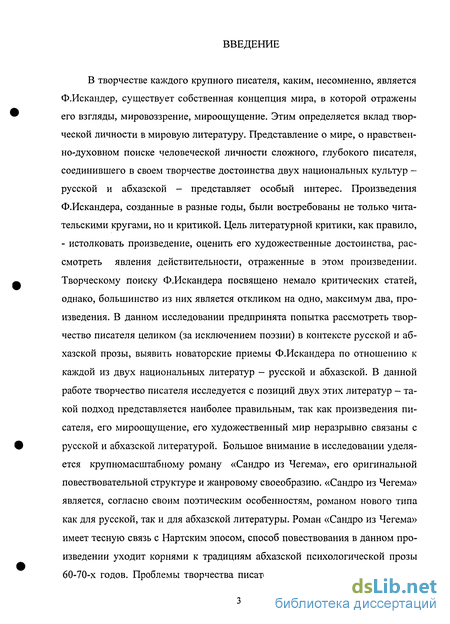 В творчестве каждого крупного писателя, каким, несомненно, является Ф.Искандер, существует собственная концепция мира, в которой отражены его взгляды, мировоззрение, мироощущение. Этим определяется вклад творческой личности в мировую литературу. Представление о мире, о нравственно-духовном поиске человеческой личности сложного, глубокого писателя, соединившего в своем творчестве достоинства двух национальных культур -русской и абхазской - представляет особый интерес. Произведения Ф.Искандера, созданные в разные годы, были востребованы не только читательскими кругами, но и критикой. Цель литературной критики, как правило, - истолковать произведение, оценить его художественные достоинства, рассмотреть явления действительности, отраженные в этом произведении. Творческому поиску Ф.Искандера посвящено немало критических статей, однако, большинство из них является откликом на одно, максимум два, произведения. В данном исследовании предпринята попытка рассмотреть творчество писателя целиком (за исключением поэзии) в контексте русской и абхазской прозы, выявить новаторские приемы Ф.Искандера по отношению к каждой из двух национальных литератур - русской и абхазской. В данной работе творчество писателя исследуется с позиций двух этих литератур - такой подход представляется наиболее правильным, так как произведения писателя, его мироощущение, его художественный мир неразрывно связаны с русской и абхазской литературой. Большое внимание в исследовании уделяется крупномасштабному роману «Сандро из Чегема», его оригинальной повествовательной структуре и жанровому своеобразию. «Сандро из Чегема» является, согласно своим поэтическим особенностям, романом нового типа как для русской, так и для абхазской литературы. Роман «Сандро из Чегема» имеет тесную связь с Нартским эпосом, способ повествования в данном произведении уходит корнями к традициям абхазской психологической прозы 60-70-х годов. Проблемы творчества писателя, его новаторство и актуаль-