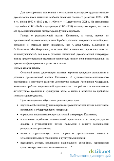 ГЛАВА I. Этнонациональная идентичность как основная тенденция формирования и развития русскоязычной литературы Калмыкии