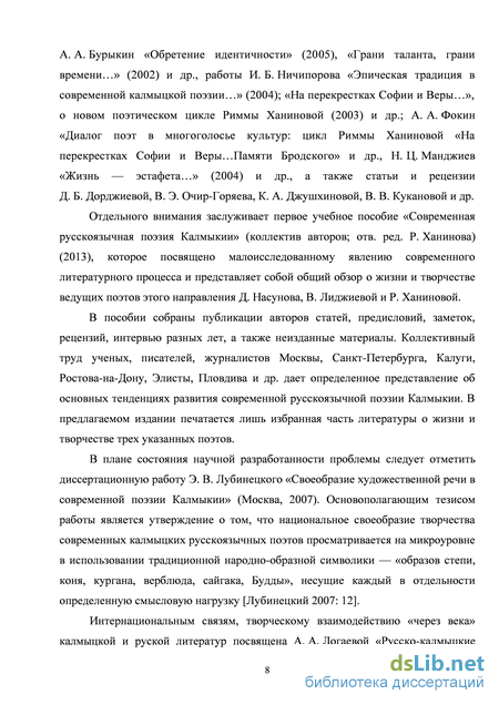 - Русскоязычная поэзия Калмыкии в 1990-е гг. ХХ в. и нач. ХХI в.: тенденции развития, жанровая система