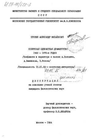 Обращение к специфике характеров и конфликтов в одноактной драматургии последних двух десятилетий вызвано потребностью не только в историко-литературном исследовании (что уже частично сделано в работах И.Вишневской, П.Аркадьева, А.Глебова, В.Пиме-нова и др.)3, но и в теоретическом выделении наиболее значимых для современного этапа явлений.