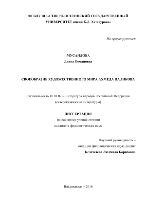 С учетом изложенного была сформулирована проблема исследования: в чем состоит своеобразие художественного мира Ахмеда Цаликова?