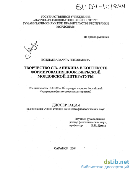 При этом мы опирались на современные концепции развития культурологических процессов в России, а также на .научно- теоретические положения, выдвинутые в трудах отечественных и .л мордовских литературоведов, критиков и историков.