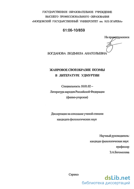 ГЛАВА 2. Жанровая специфика классической поэмы Удмуртии 45