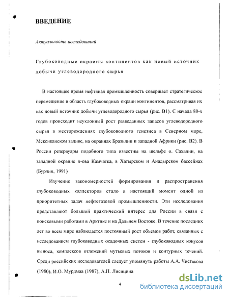 Изучение закономерностей формирования и распространения глубоководных коллекторов стало в настоящий момент одной из приоритетных задач нефтегазовой промышленности. Эти исследования представляют большой практический интерес для России в связи с поисковыми работами в Арктике и на Дальнем Востоке. В течение последних лет во всем мире наблюдается постоянный рост объемов работ, связанных с исследованием глубоководных осадочных систем - глубоководных конусов выноса, комплексов отложений мутьевых потоков и контурных течений. Среди российских исследователей следует упомянуть работы А.А. Чистякова (1980), И.О. Мурдмаа (1987), А.П. Лисицина (1988), О.В, Япаскурта (1998) и