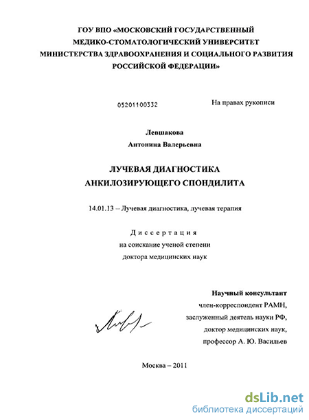 Диссертация является первым научным исследованием, посвященным комплексной лучевой диагностике анкилозирующего спондилита. В соответствии с принципами доказательной медицины достоверно определены возможности методов лучевой диагностики в выявлении воспалительных и структурных изменений крестцово-подвздошных суставов и позвоночника у больных анкилозирующим спондилитом. Впервые проведена сравнительная оценка методов лучевой диагностики в выявлении сакроилиита на ранних стадиях болезни и разработана оптимальная методика обследования больных с подозрением на спондилоартрит. Статистически оценены возможности стандартной рентгенографии, мультиспиральной компьютерной и магнитно-резонансной томографии в выявлении сакроилиита, спондилита, артрита синовиальных суставов позвоночника и других изменений, характерных для анкилозирующего спондилита. Данные лучевых методов исследования сопоставлены с длительностью болезни, разной степенью активности заболевания, а также с различной интенсивностью болей в позвоночнике. Впервые представлена количественная оценка воспалительных изменений крестцово-подвздошных суставов и позвоночника в виде систем счета для объективной оценки эффективности проводимой терапии и прогноза заболевания.