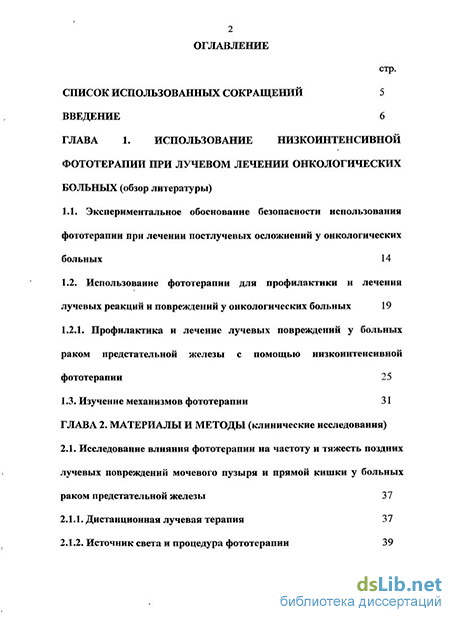 2.1. Исследование влияния фототерапии на частоту и тяжесть поздних лучевых повреждений мочевого пузыря и прямой кишки у больных раком предстательной железы 37