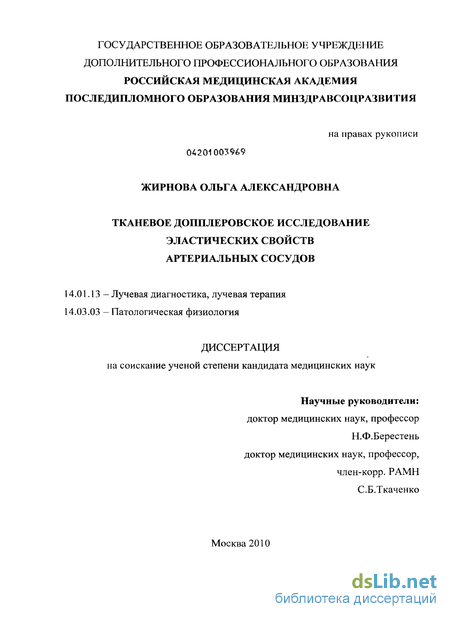 Решаемая в исследовании проблема является научным обоснованием использования тканевой допплерографии как перспективного метода изучения эластичности стенок магистральных артерий, как у здоровых лиц, так и у пациентов с сердечно-сосудистой патологией. Важным в практическом отношении является возможность неинвазивной оценки эластичности артериальных сосудов с помощью данных качественного и количественного анализа спектра движения стенок общей сонной и общей бедренной артерий. Представленный алгоритм проведения методики тканевой допплерографии (ТД) и постобработки тканевого допплеровского исследования (ТДИ) стенок артериальных сосудов, а также алгоритм количественного анализа полученных данных могут широко использоваться в клинической практике для изучения сосудистой эластичности. С помощью метода тканевой допплерографии определены новые ультразвуковые маркеры снижения эластичности стенок общей сонной и общей бедренной артерий и их ориентировочные нормативы. Полученные в работе данные о возможностях тканевой допплерографии и ее роли в изучении эластичности артериальных сосудов могут быть использованы в лекционных курсах на кафедрах ультразвуковой и функциональной диагностики, а также в соответствующих пособиях и руководствах.
