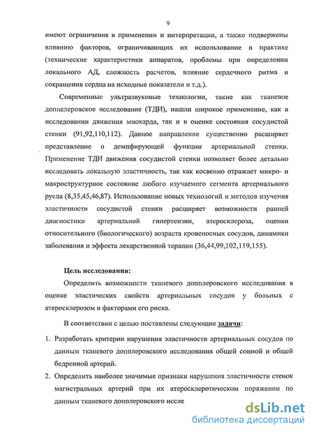 Определить возможности тканевого допплеровского исследования в оценке эластических свойств артериальных сосудов у больных с атеросклерозом и факторами его риска.