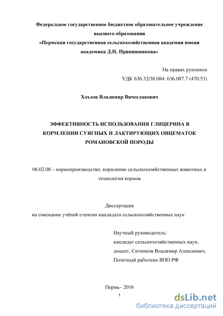 Теоретическая и практическая значимость работы. Результаты, полученные при выполнении работы, углубляют теорию кормления овец и дают научное обоснование возможности компенсации энергии путем добавки глицерина к рационам кормления овцематок романовской породы в последние 7-8 недель суягности и лактирующих.