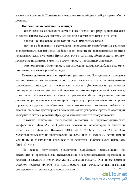 Основной целью исследований явилось изучение эффективности влияния экспериментальных кормовых добавок на адаптацию и мясную продуктивность молодняка герефордской породы австралийской и местной селекции в условиях Приамурья.