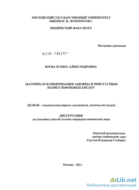 Цель работы состояла в изучении особенностей матричной полимеризации анилина в присутствии полисульфоновых кислот, а именно: