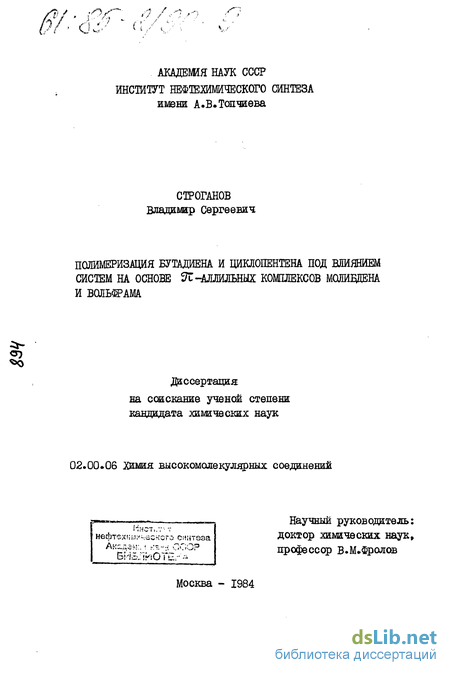 Работами школы академика Б.А.Долгошюска убедительно показано, что использование индивидуальных металл оорганических соединении, в частности, #Г-аллильных комплексов переходных металлов, в качестве катализаторов стере оспецифиче ской полимеризации диенов не только открывает новые пути создания каталитических систем, но и существенно облегчает задачу изучения механизма их действия.